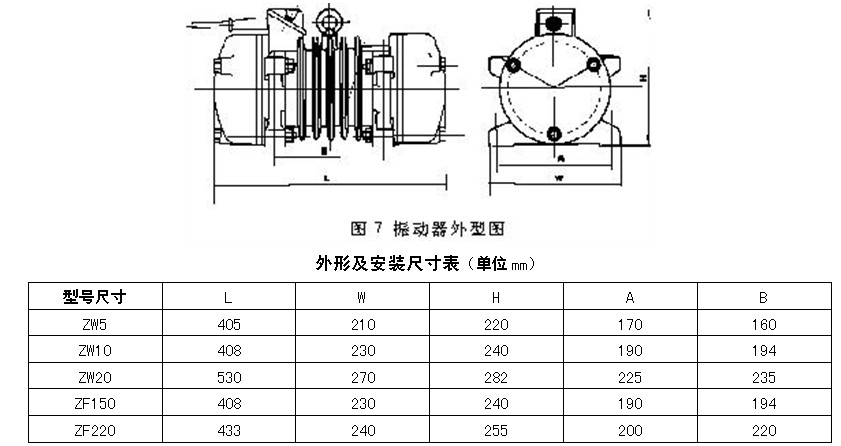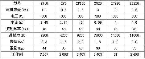 4. 獨特的偏心結構,對稱地分布在軸承外側;其中ZW10、ZF150、ZF220、ZW20型可根據施工情況調整激振力大小。