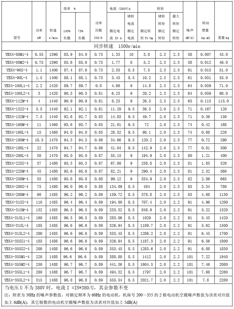 YBX4 系列電動機為我公司自主研發推出的全封閉、自扇冷、鼠籠式高效率隔爆型三相異步電動機。效率指標符合 GB18613-2012《中小型三相異步電動機能效限定值及能效等級》中的能效等級 1 級,且具有性能優良,使用安全可靠,振動、噪聲比同類產品低的特點,符合環保要求。